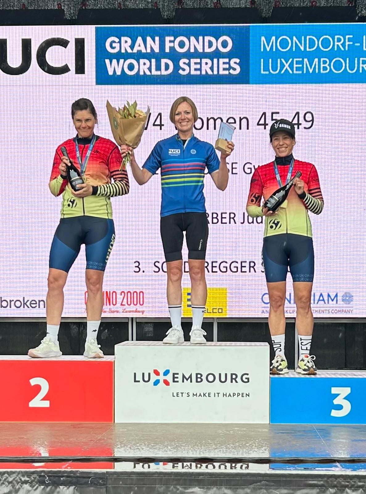Het moment waarop Gwen besefte dat ze écht kon meedoen op Europees niveau, kwam tijdens de UCI Granfondo Schleck in Luxemburg. Daar behaalde ze een derde plaats in het overall klassement. Dat podium was niet alleen een resultaat, maar vooral een bevestiging dat ze thuishoorde tussen de besten.